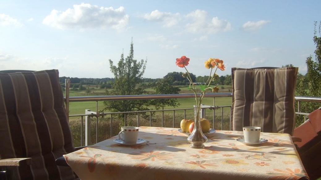 Sie sind hier: Startseite » Haus Sarah Ferienwohnungen » DG links Sarah 4 Pers. Komfortable Ferienwohnung. Dachgeschoss links - mit Blick zum Golfplatz Geniessen Sie den Rundgang: